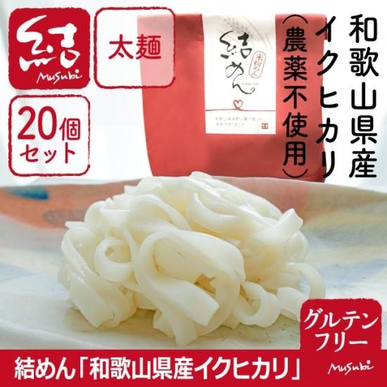 太麺「結めん 和歌山県産イクヒカリ(農薬不使用)」米粉太麺20個セット【グルテンフリー】